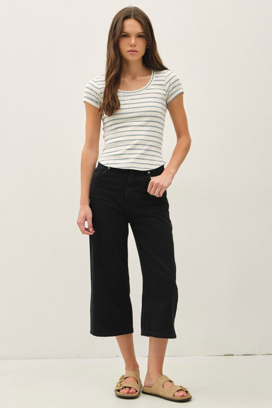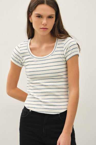 Blue Striped Ribbed Short Sleeve