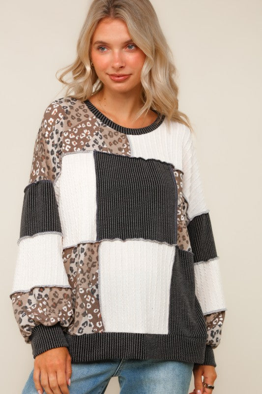 Ribbed & Cable Knit Animal Print Top - 2 Colors!
