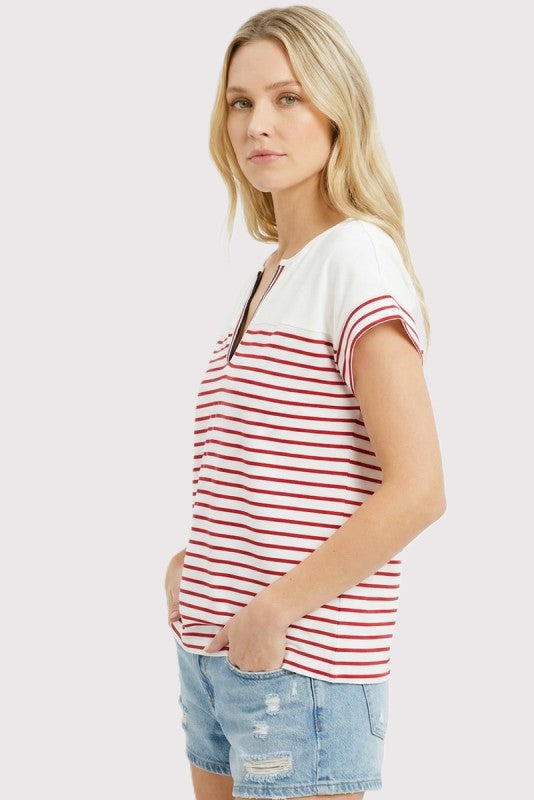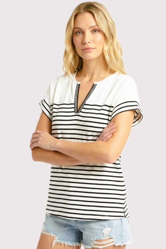 Sutton Striped V-neck Tee - 2 Colors!