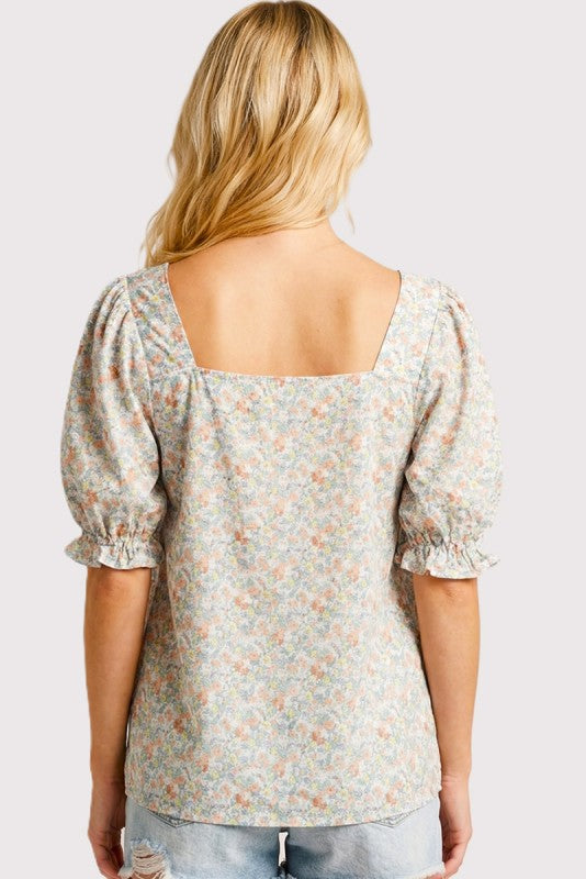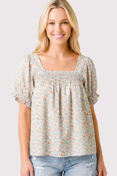 Smocked Floral Print Top