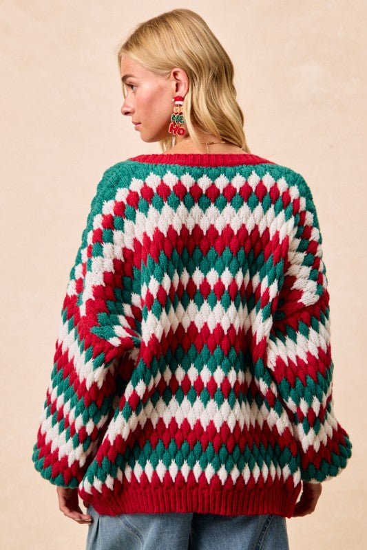 Holiday Vibes Red & Green Cardigan