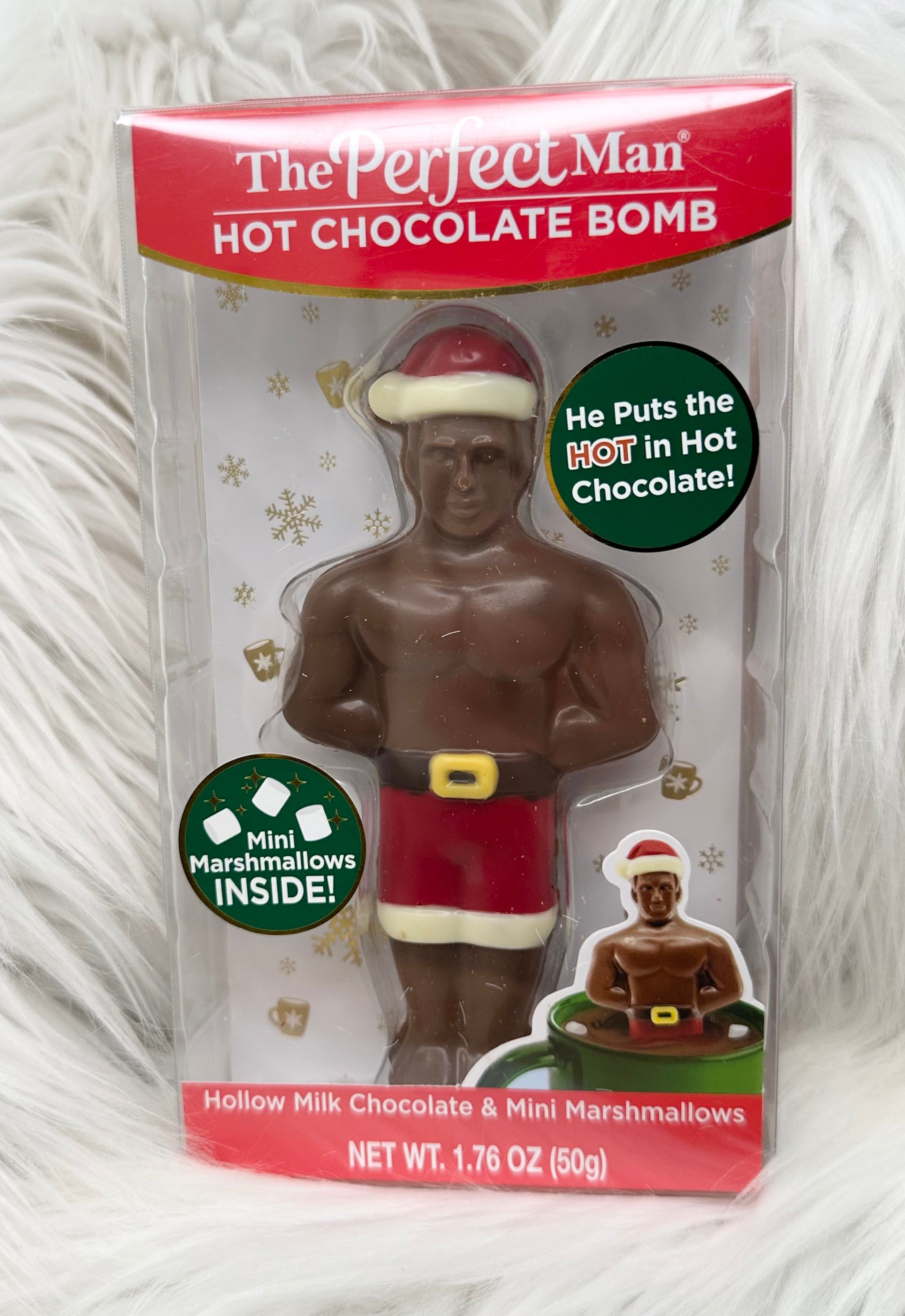 The Perfect Man hot chocolate bomb makes a hilariously delicious stocking stuffer, secret Santa, white elephant or a gift for yourself!