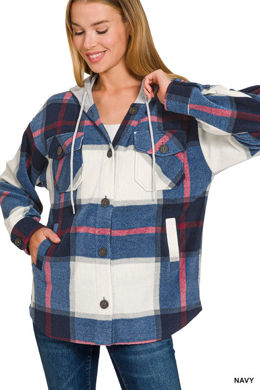 Plaid Hooded Shacket - 3 colors!