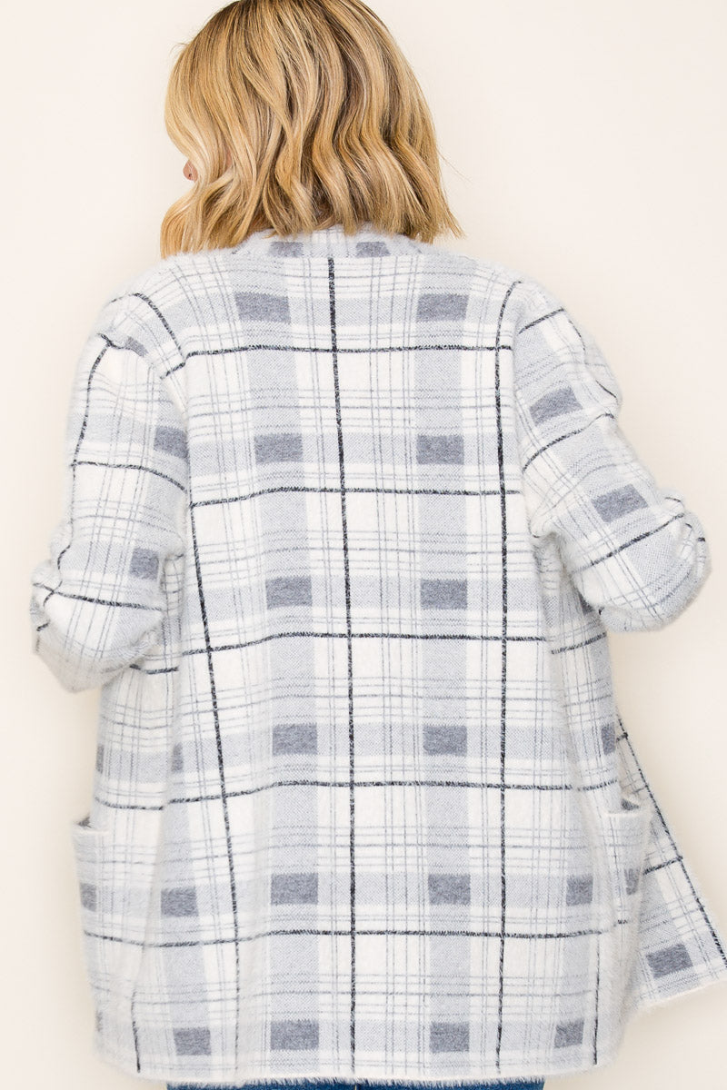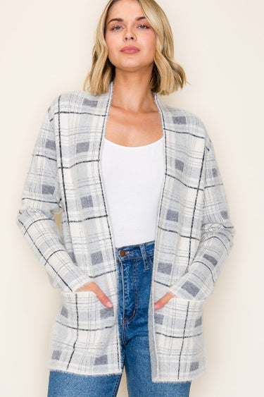 Gray & Ivory Soft Plaid Cardigan