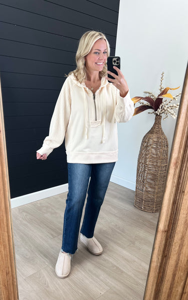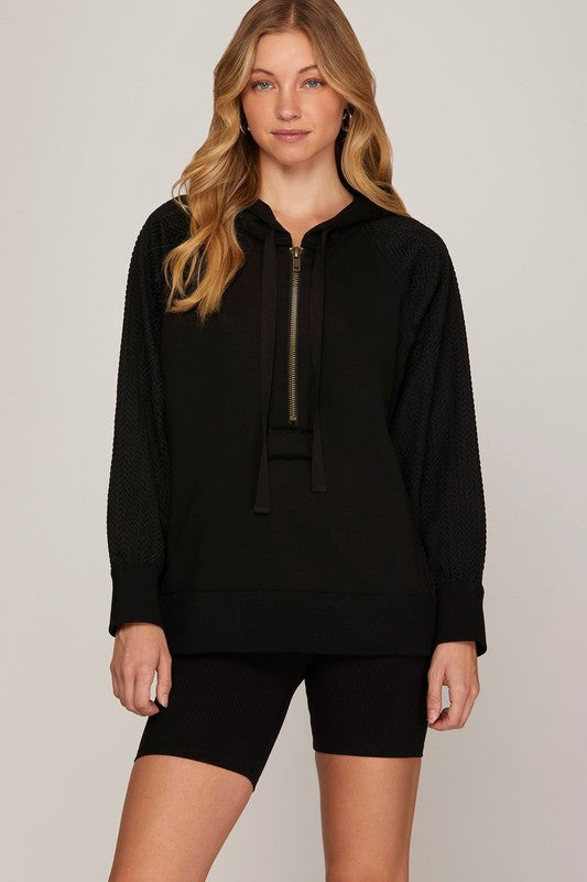Textured Sleeve Zip Up Hoodie - 2 Colors!