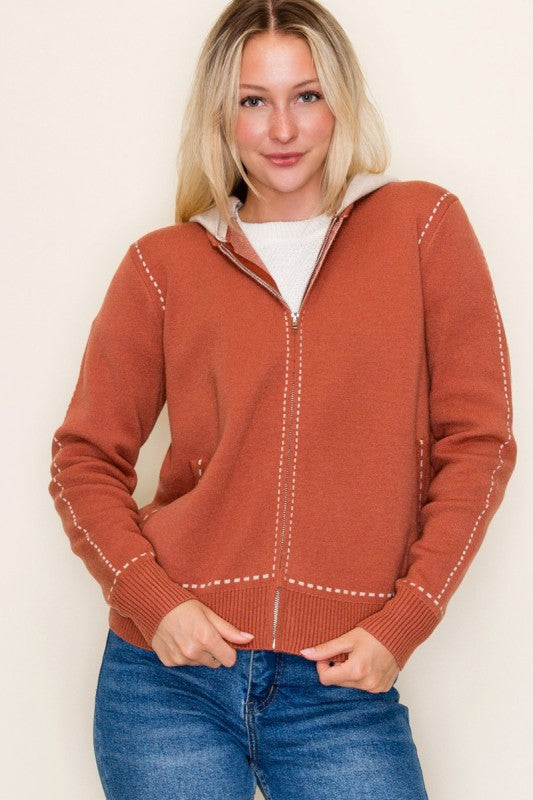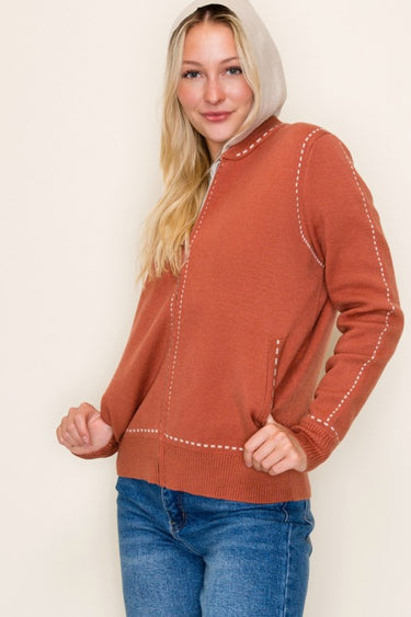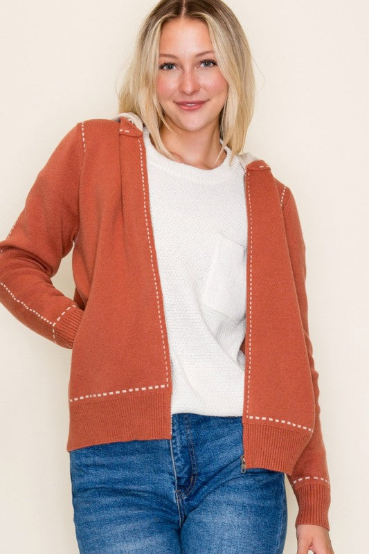 Stitched Sweater Jacket with Detachable Hood - 2 Colors!