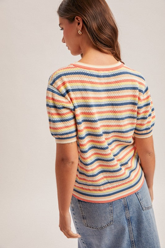 Multicolor Pointelle Short Sleeve Sweater Top