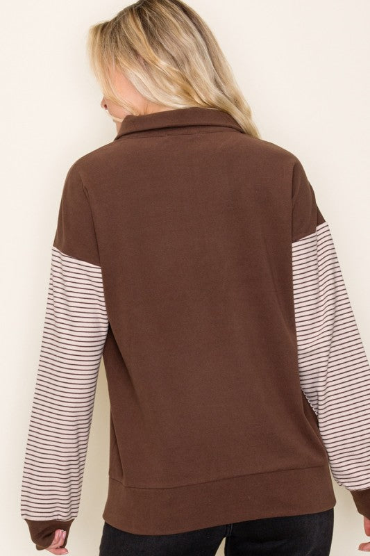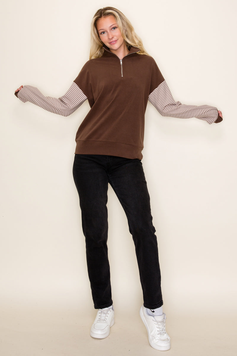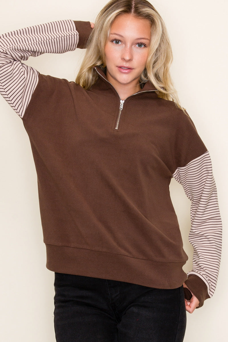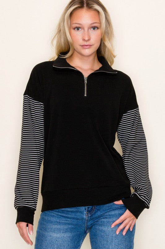 Daphne Striped Sleeve Zip Sweatshirt - 2 Colors!