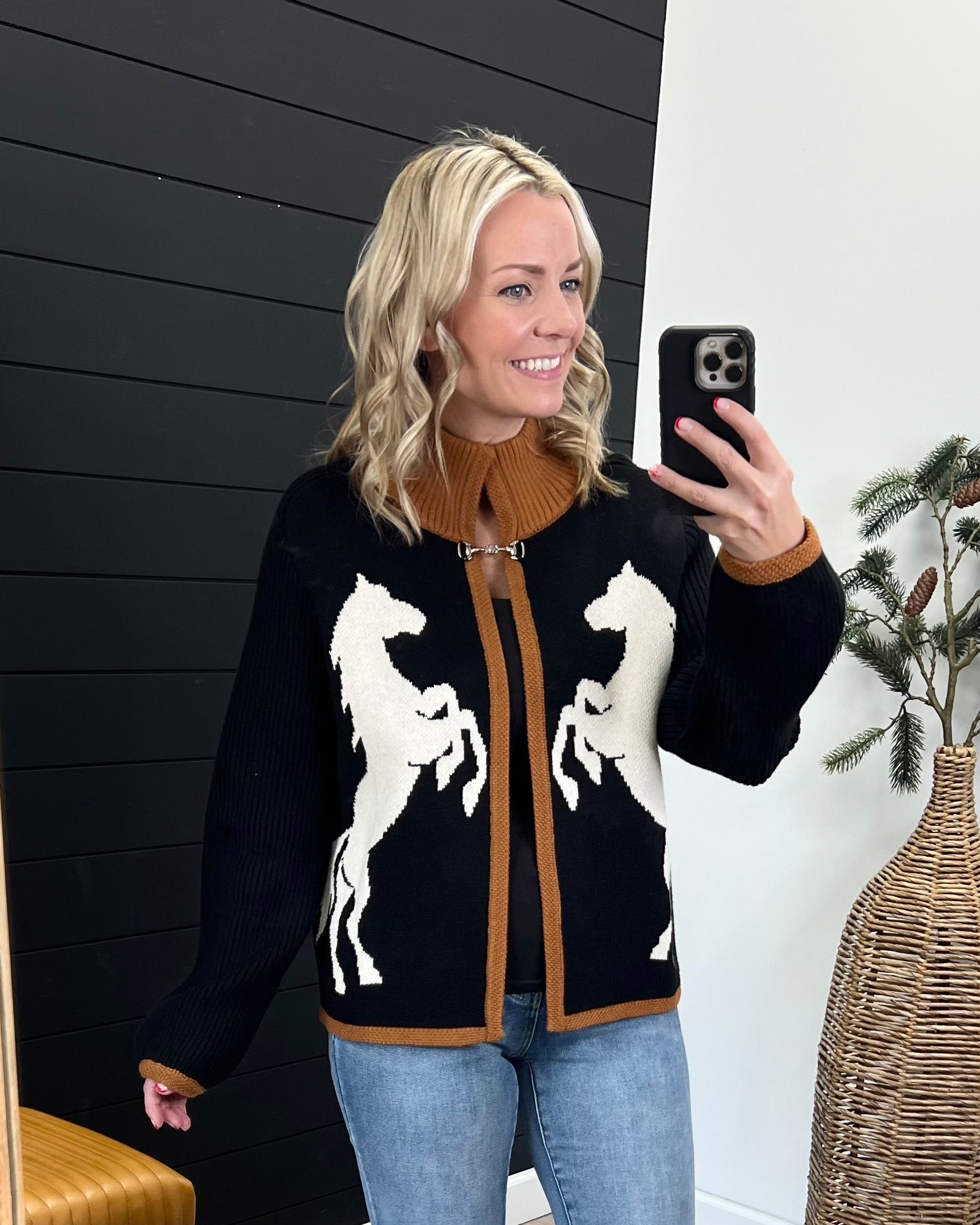 THML Brand Black & Camel Horse Cardigan