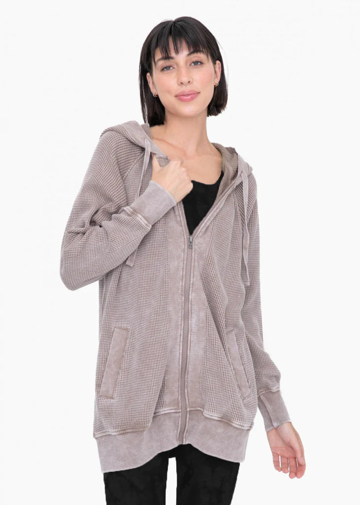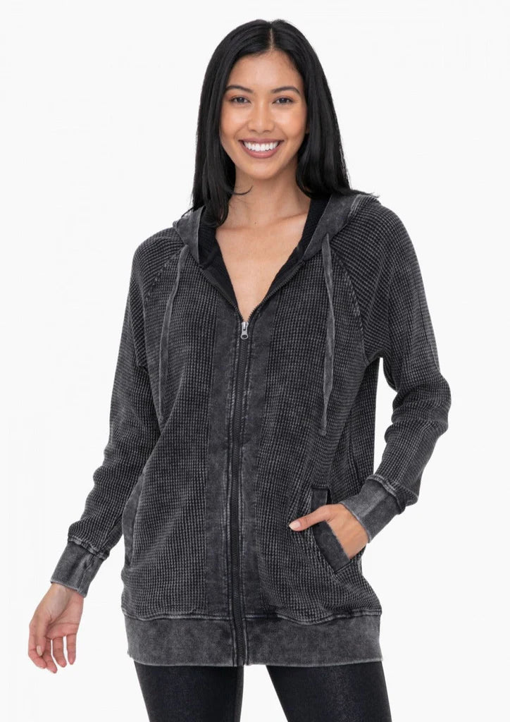 Mono B Mineral Washed Waffle Relaxed Hoodies