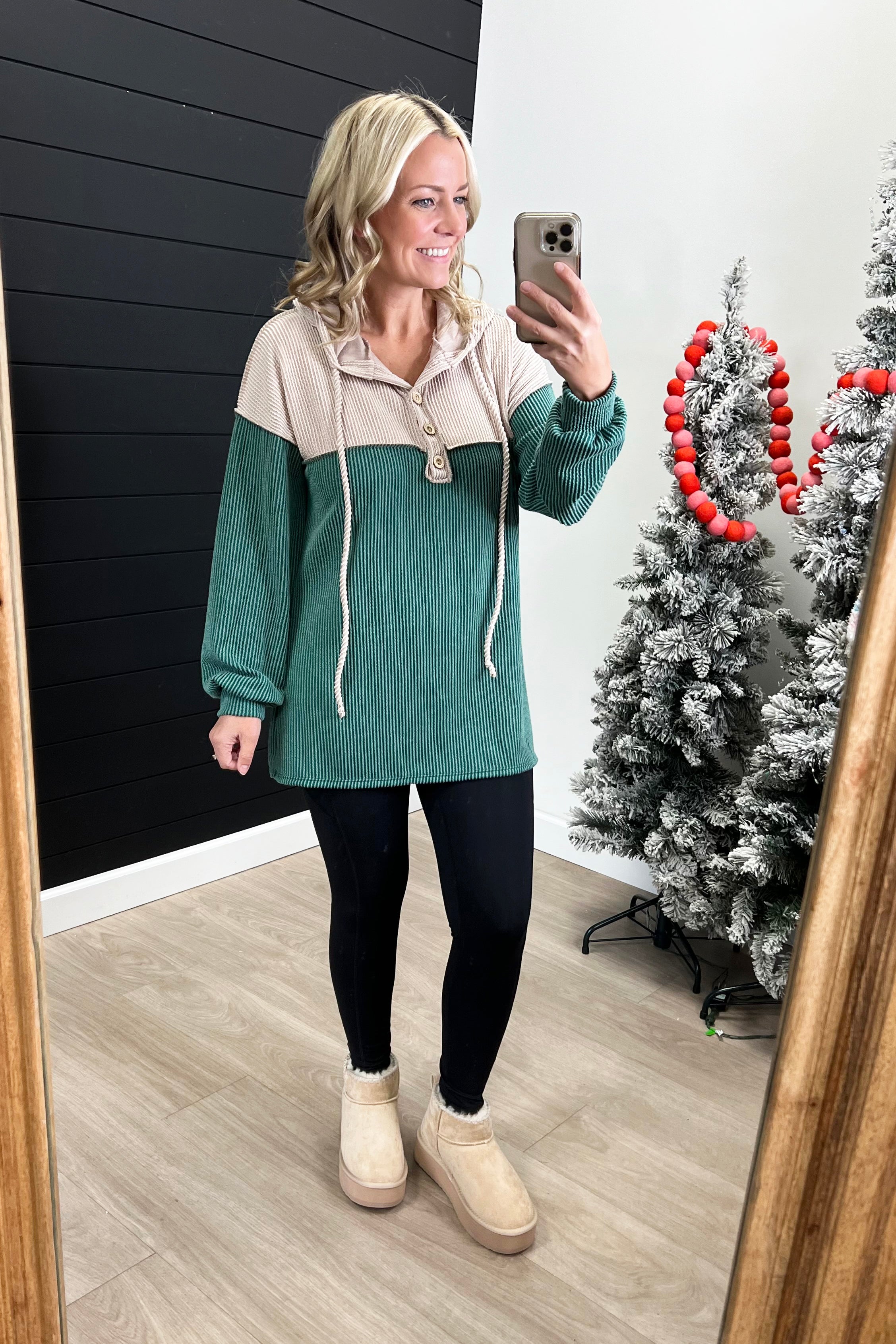 Hunter Green Ribbed Hoodie