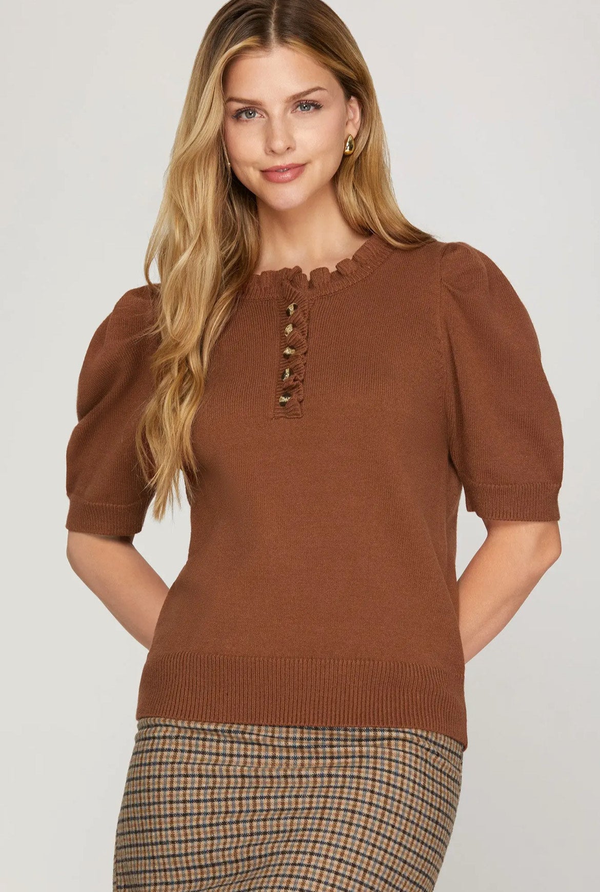 Short Sleeve Ruffled Neck Sweater Top - 3 Colors!