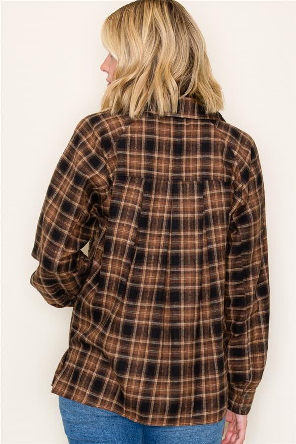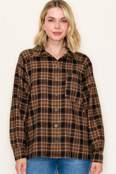 Brown, Black & Taupe Plaid Button Up