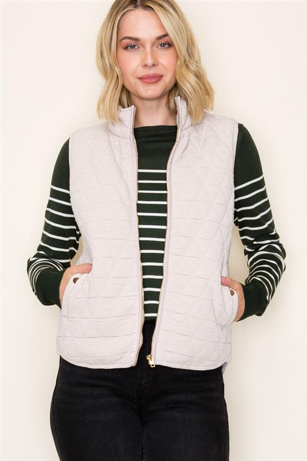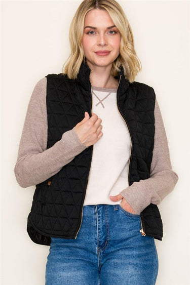 Quilted Knit Gold Zip Puffer Vests - 2 Colors!