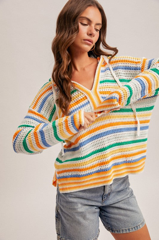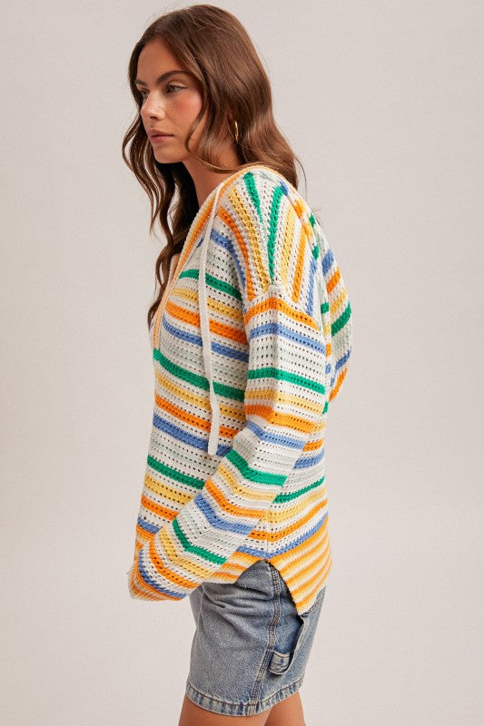 Blaire Multicolor Open Knit Hoodie - 2 Colors!