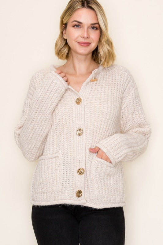 Oatmeal Gold Button Chunky Cardigan