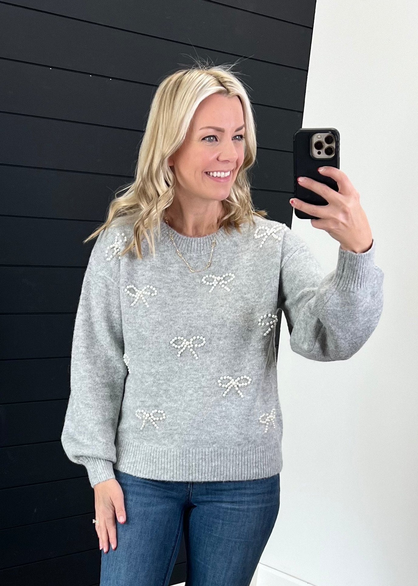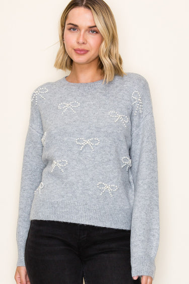 Heather Gray Pearl Bow Sweater