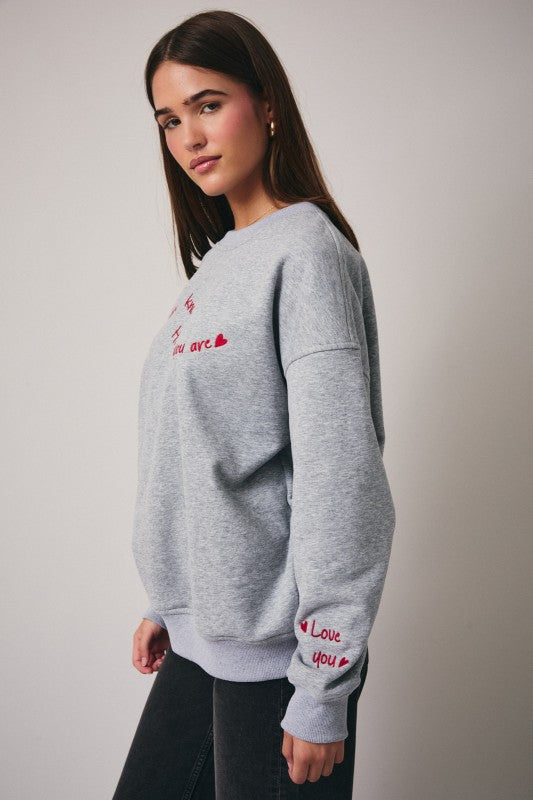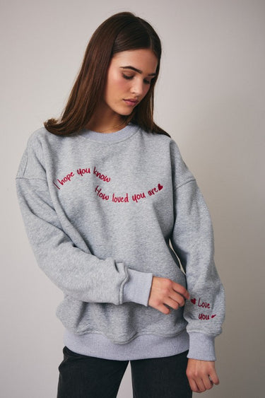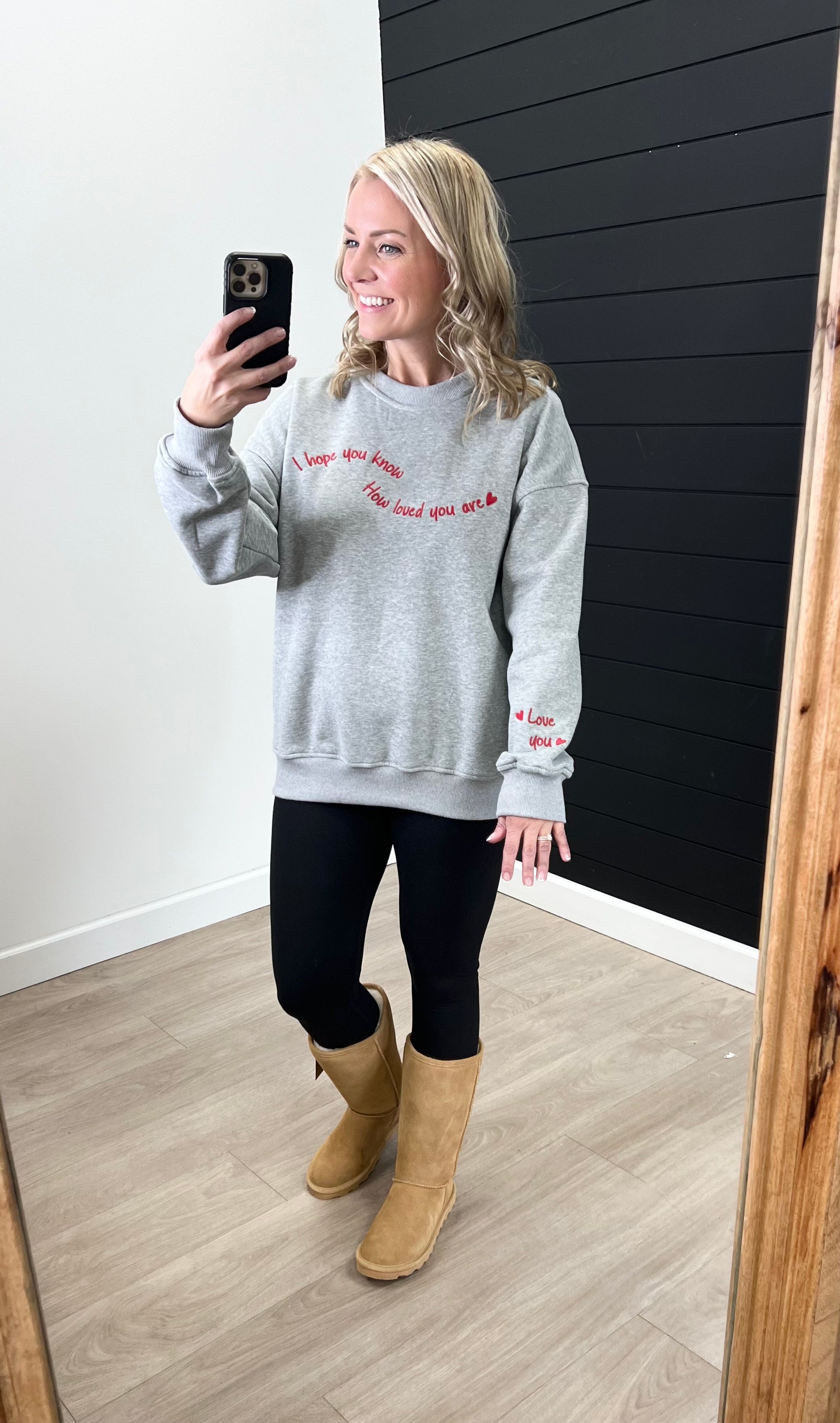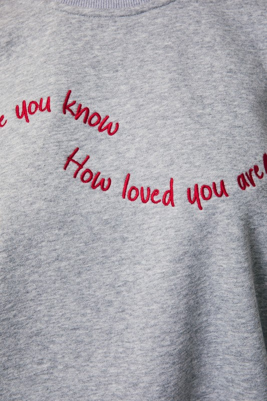 Heather Gray How Loved You Are Embroidered Sweatshirt