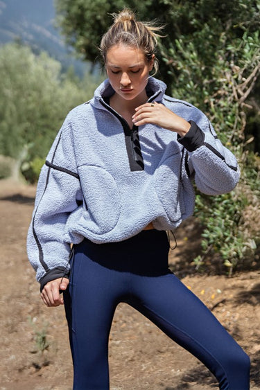 Lavender Blue & Black Sherpa Quarter Zip Jacket