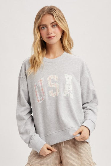 USA Patchwork Heather Gray Sweatshirt