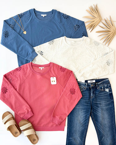Embroidered Sleeve Pullovers - 3 Colors!