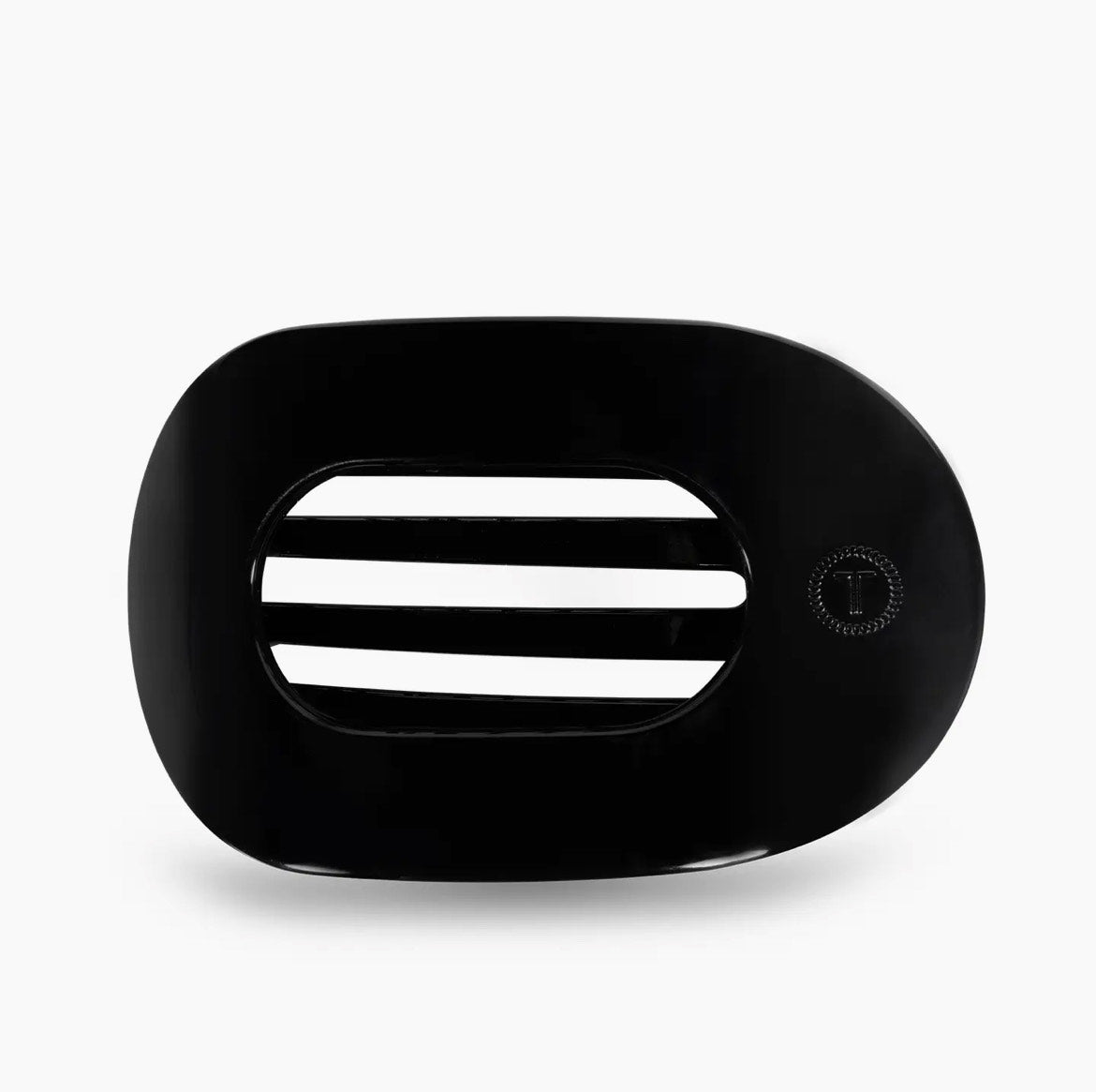 Lay flat and relax with the new TELETIES Jet Black Large Flat Round Hair Clip in Black. This hair clip is designed to allow you to lay back flat, do yoga, or sit comfortably in a seat with a headrest, and it is made with the same material that is nearly unbreakable.