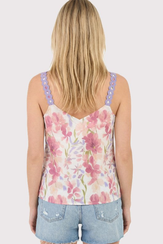White & Lavender Floral RicRac Strap Tank Top