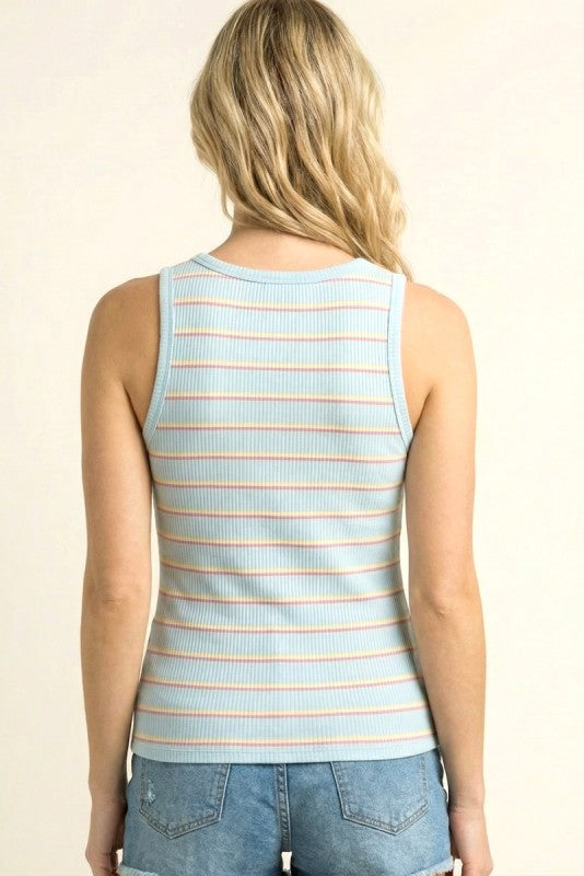Light Blue Make My Day Multi Striped Ribbed Tank Top Light Blue Make My Day Multi Striped Ribbed Tank Top