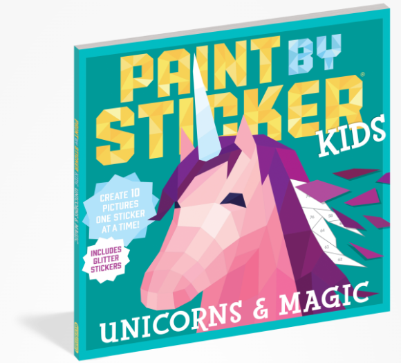 Paint by Sticker Kids: Unicorns & Magic includes everything kids need to create ten vibrant images, including unicorns, a dragon, a princess, and more.