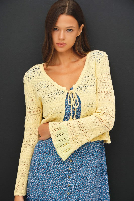 Buttermilk Yellow Tie Front Cropped Cardigan