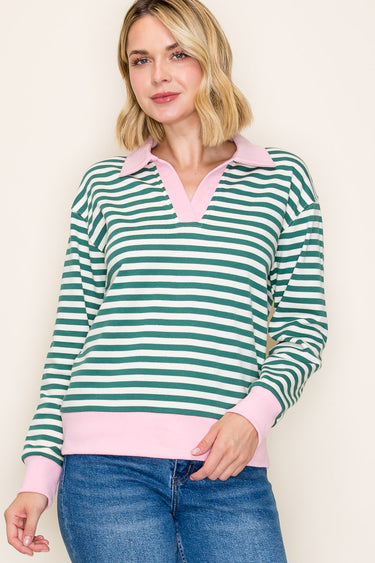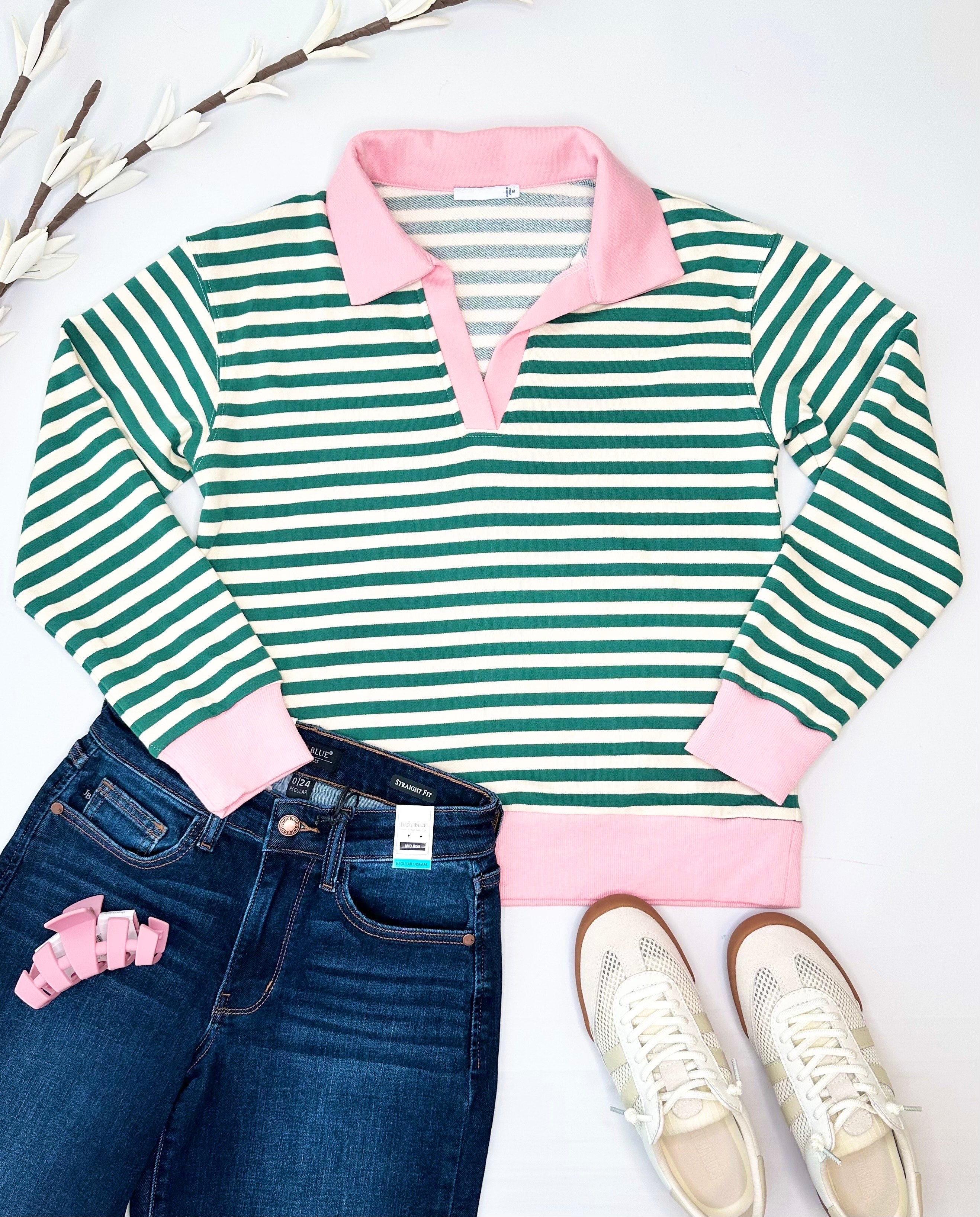 Green & Pink Striped Pullover