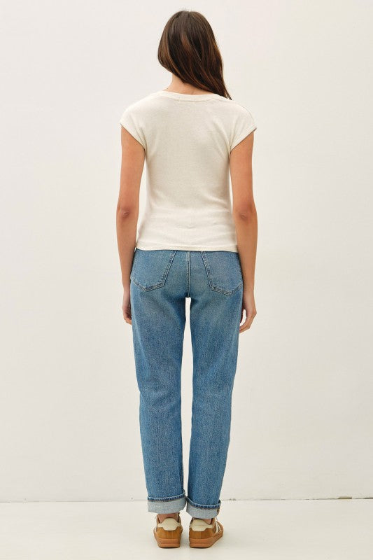 Oatmeal Ribbed Cap Sleeve Top