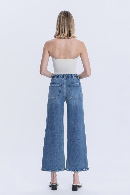 Vervet Elastic Waist Band Comfort Stretch Wide Leg Jean