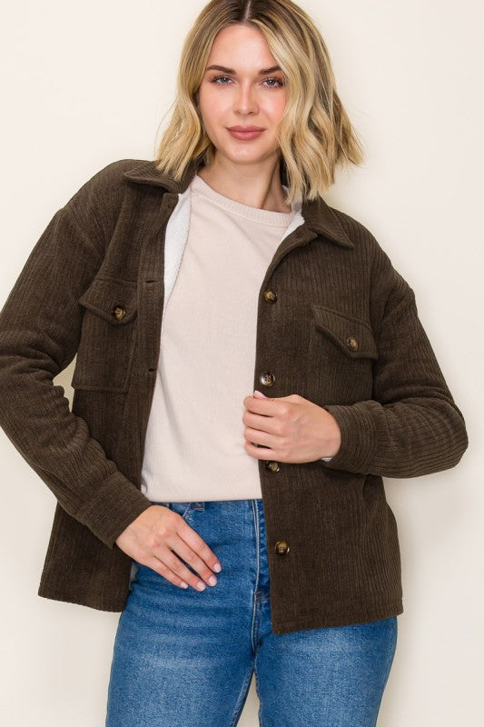Sherpa Lined Corduroy Shacket - 3 Colors!
