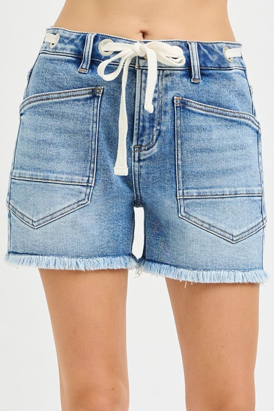 Risen Slouchy Eyelet Drawstring Detail Shorts