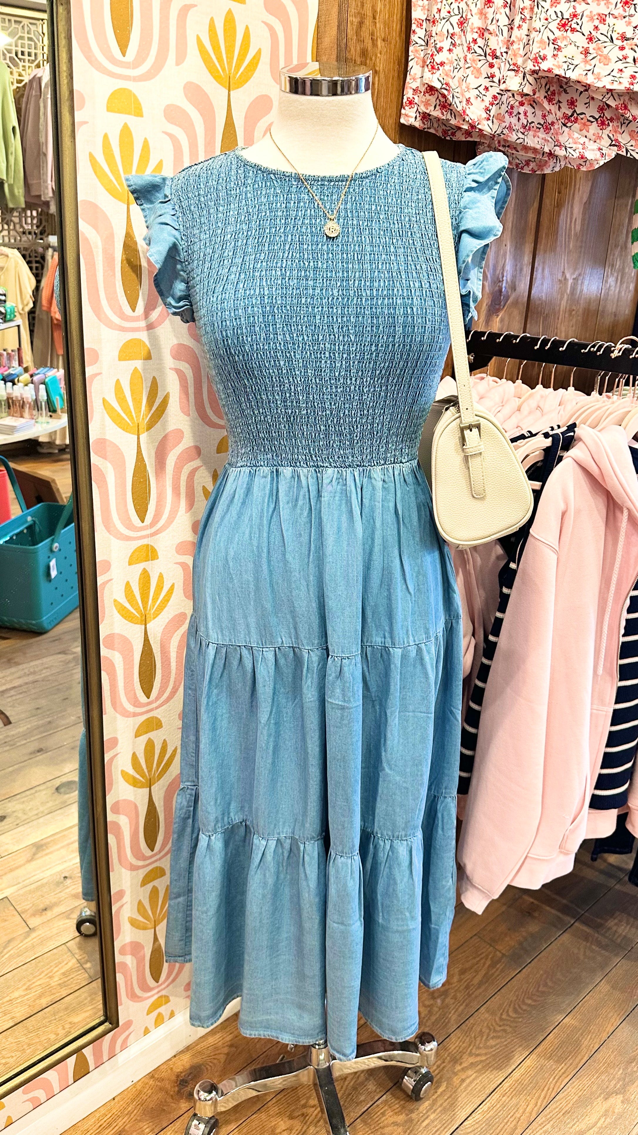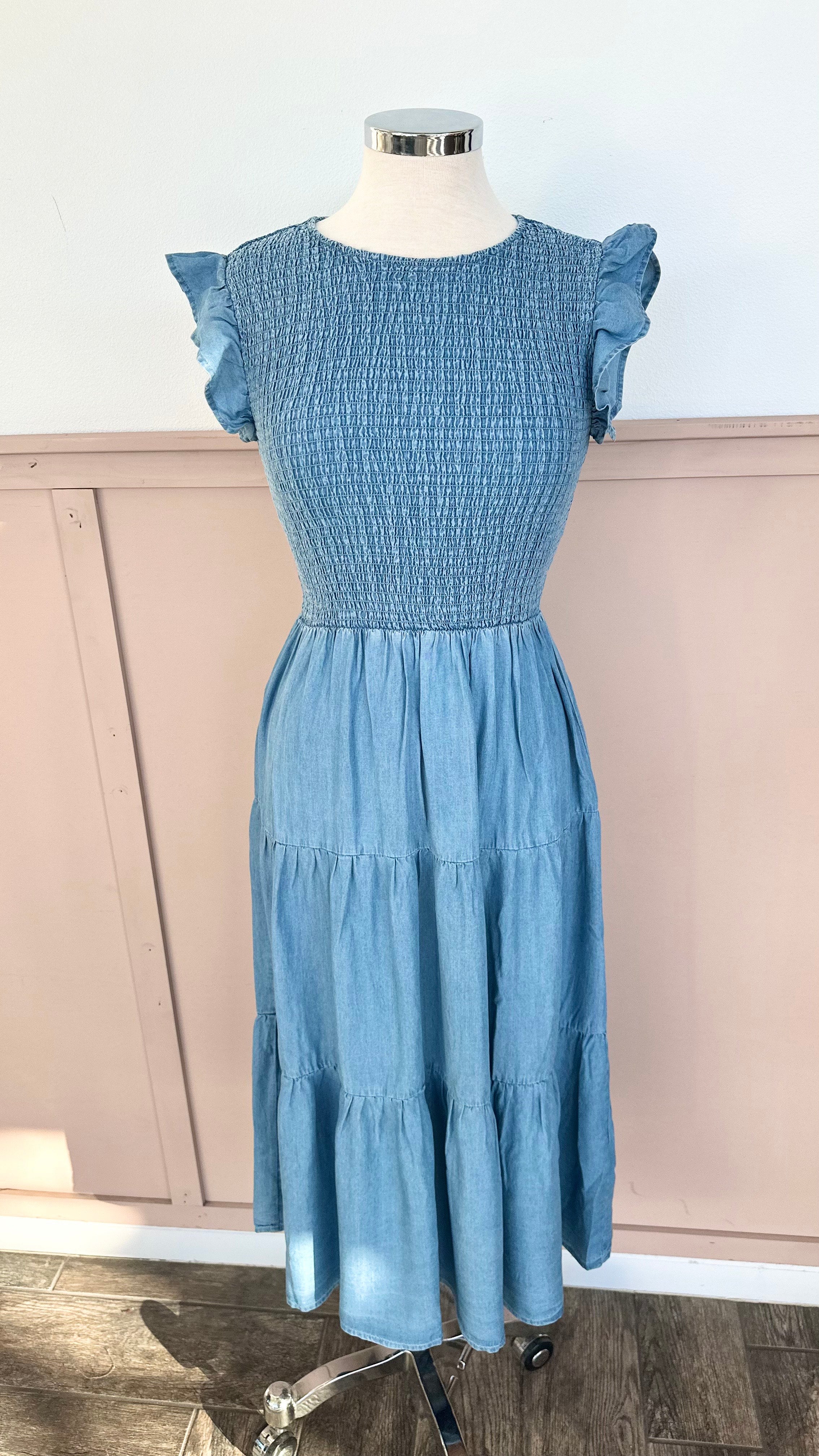 Chambray Smocked Dress