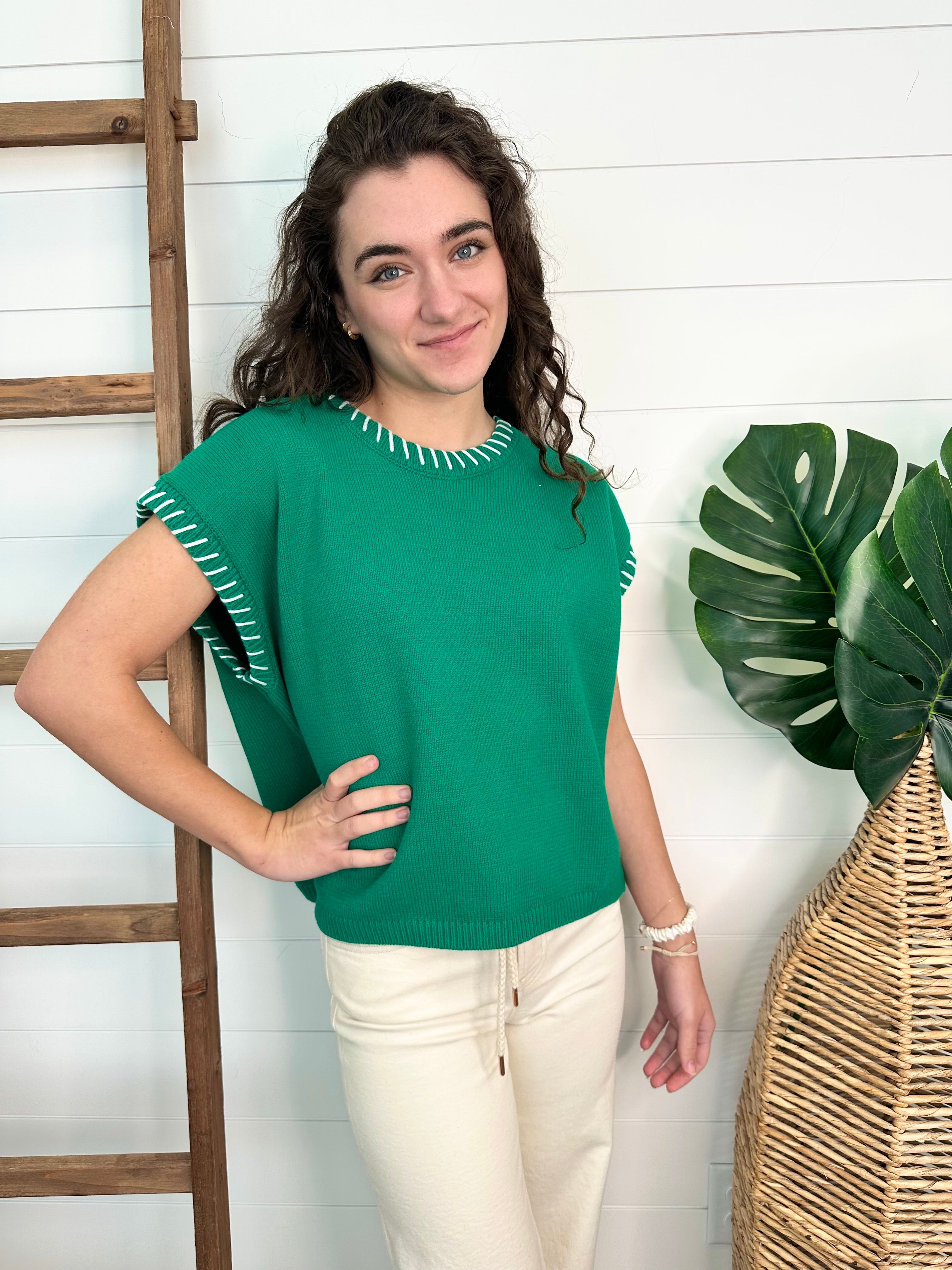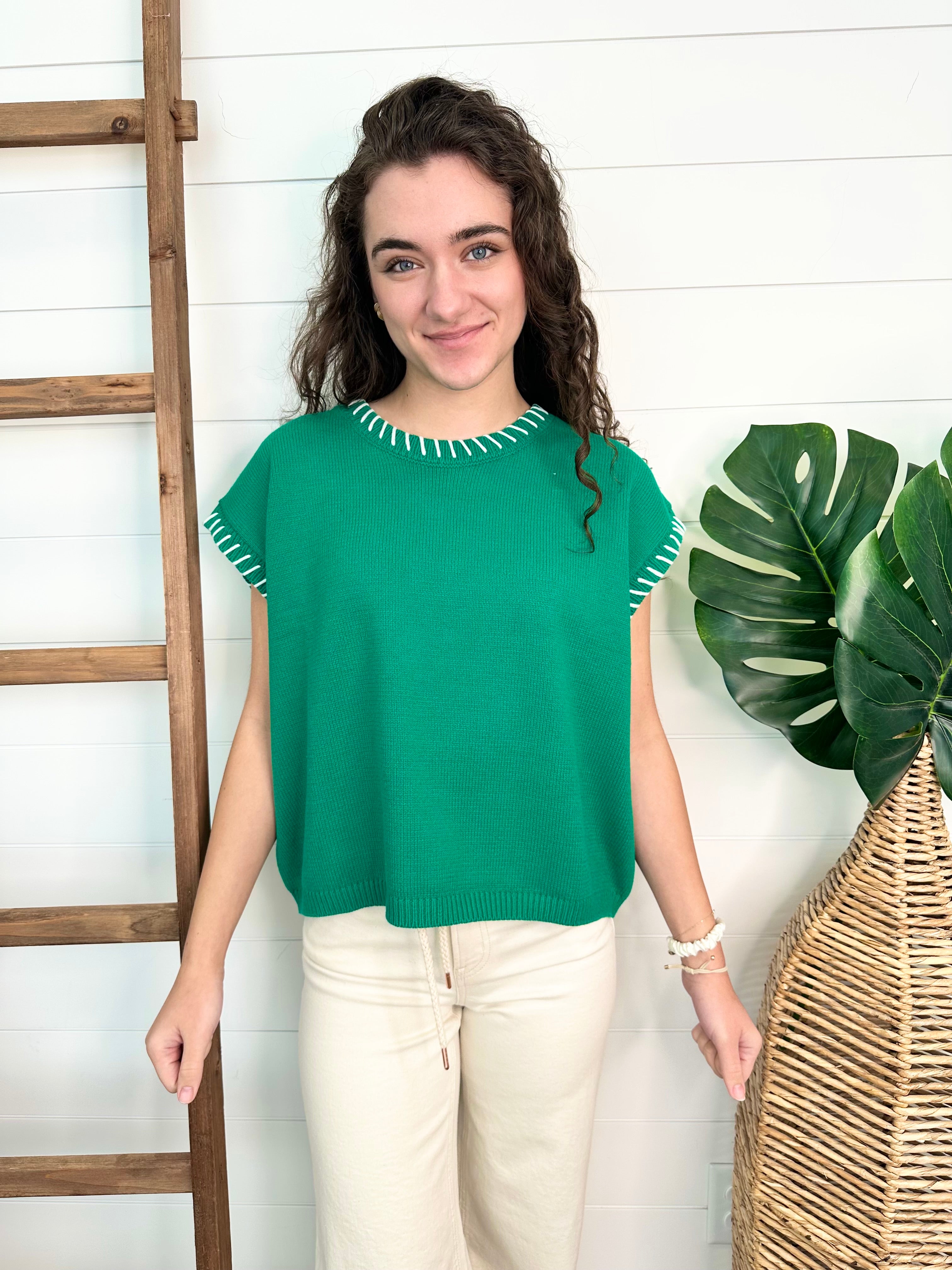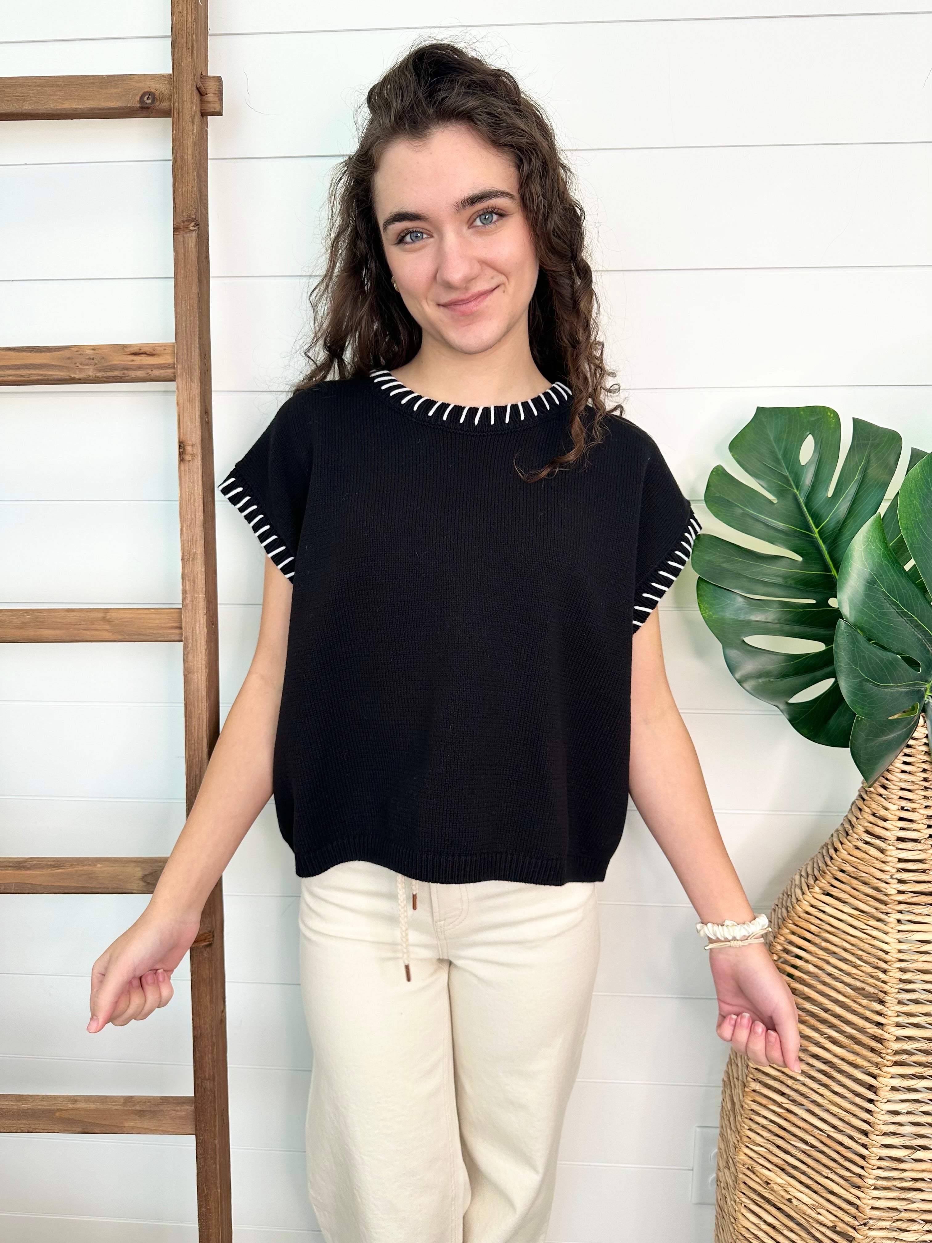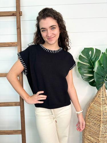 Stitch Detail Short Sleeve Sweater - 2 Colors!