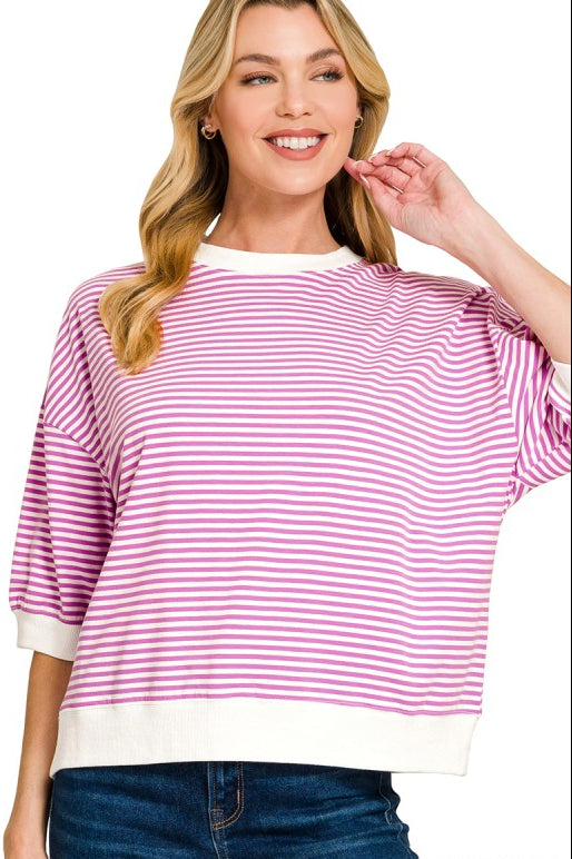 Bright Mauve Striped Short Sleeve Top