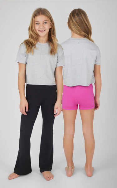 The Girls' 3-Piece Tee, Shorts, and Flare Legging Set is the ultimate blend of comfort and style. Whether for a workout or a casual day out, this versatile set will quickly become a go-to favorite in any active girl's wardrobe.