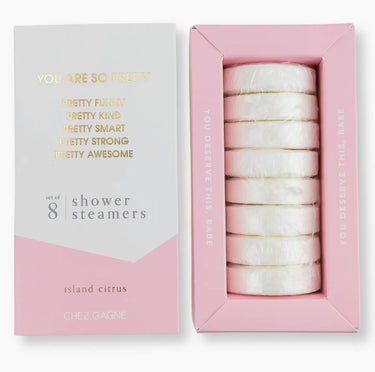 The You Are So Pretty Island Citrus Shower Steamers turn any shower into a tropical self-care escape. Infused with essential oils, these steamers bring the sweet, sunny scent of citrus and island vibes to wash away stress and self-doubt — leaving you feeling refreshed, confident, and like the queen you are. Perfect for everyday self-care or thoughtful gifting, these vegan, cruelty-free steamers are made with clean ingredients in the USA and packaged in a chic, gift-ready box.
